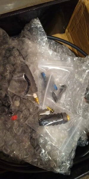 You receive front and rear hydraulic brake assemblies with pre-filled hoses, 2-pin power cut-off connector for rear brake light, and installation instructions. Brake rotors sold separately if needed.