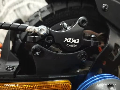 Install brake calipers on mounts. Connect the 2-pin power cut-off to activate the rear brake light—simple plug-and-play design.