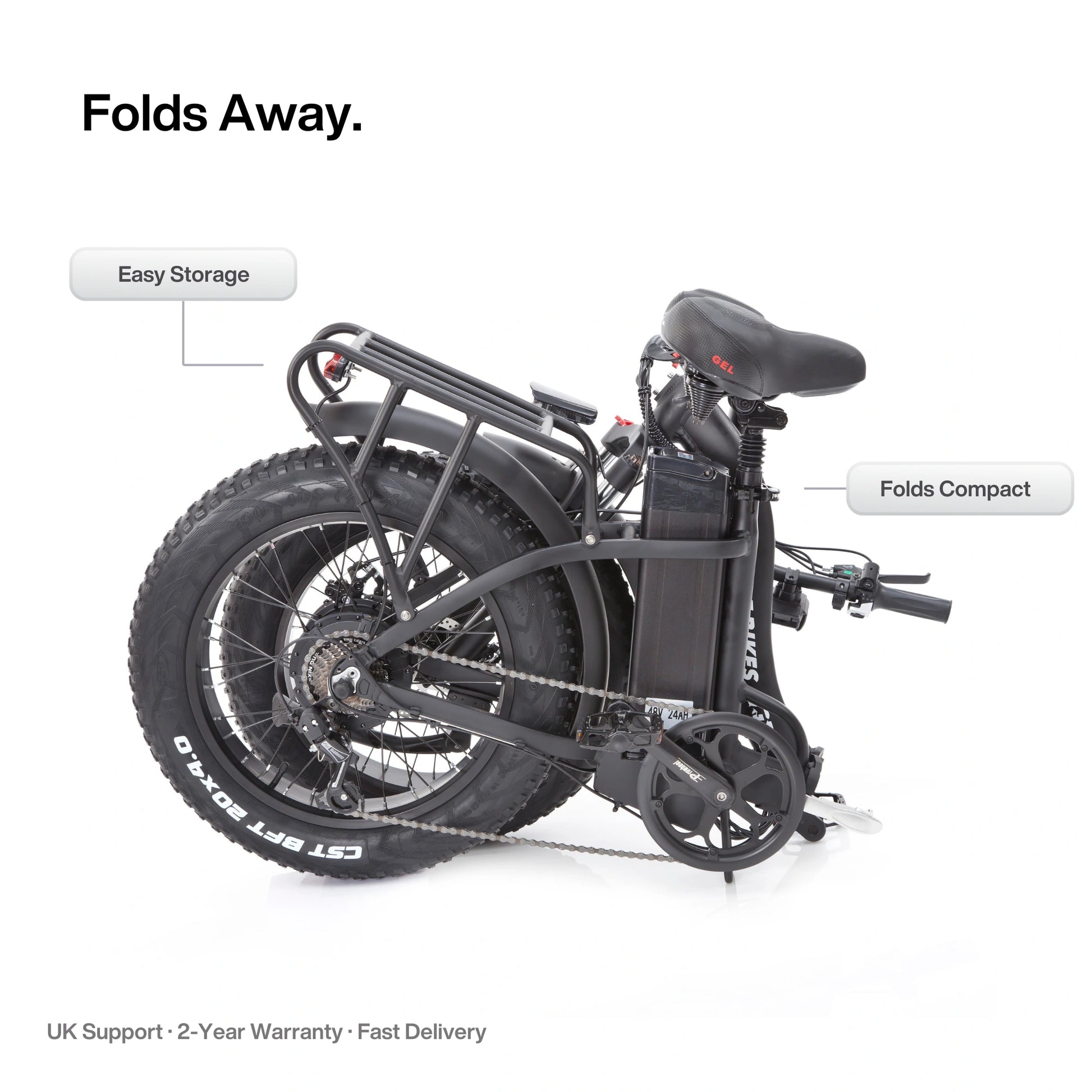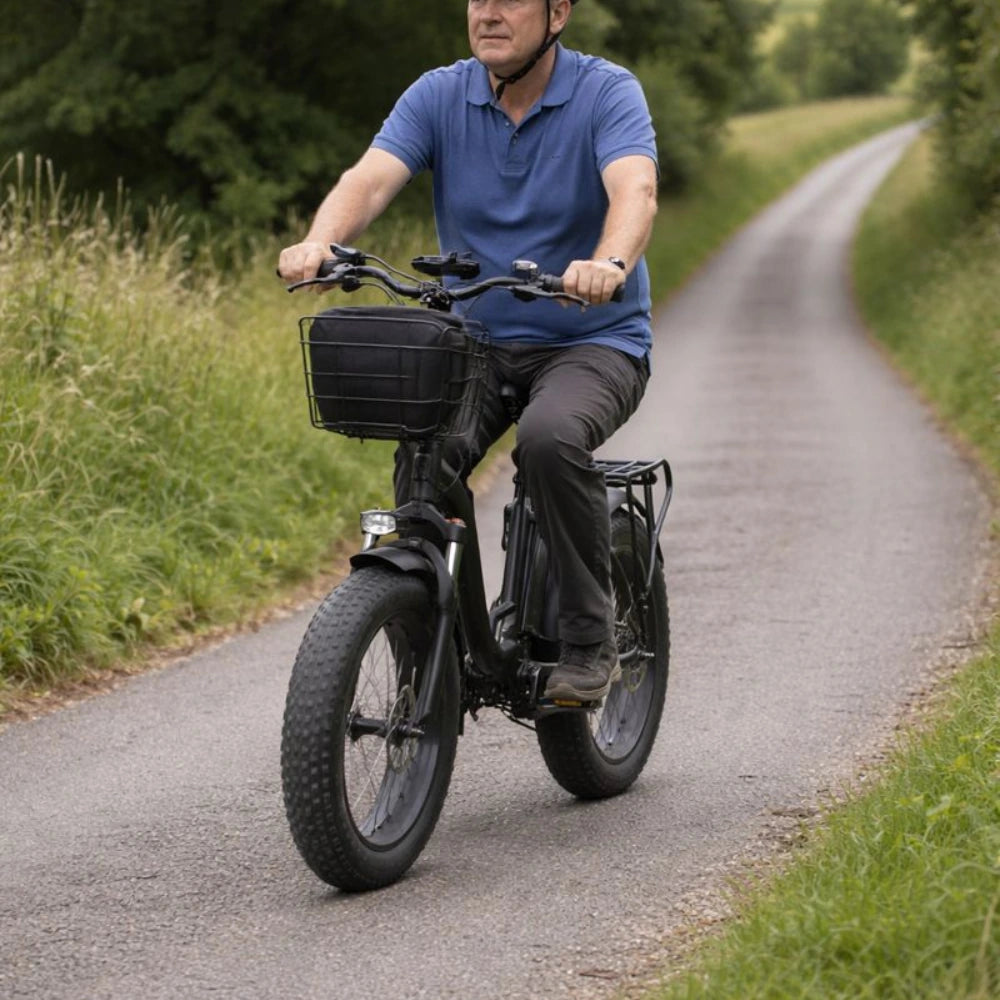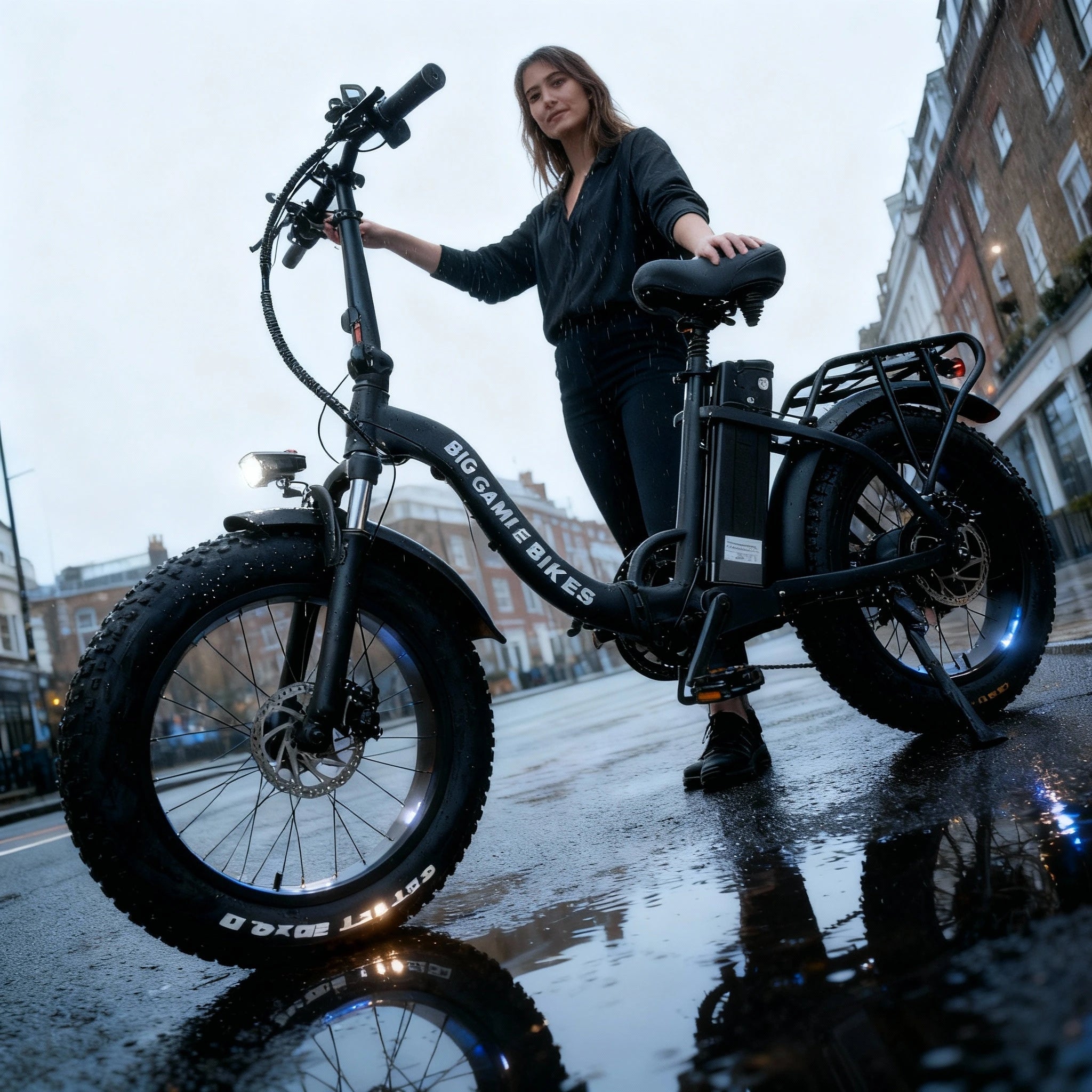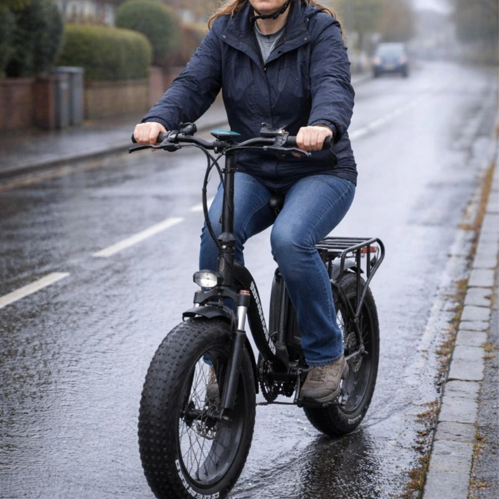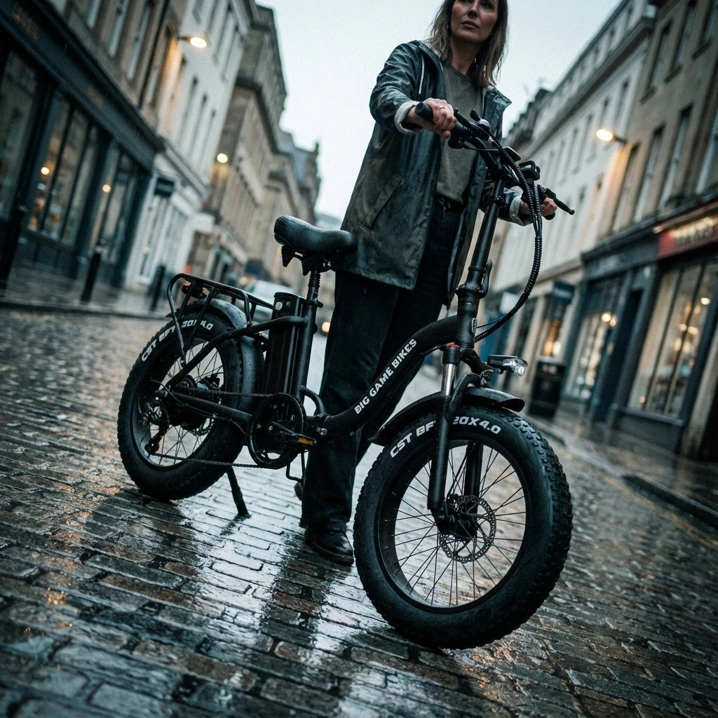 Very. The 20" × 4.0" fat tyres and the suspension system give the Impala a confident, planted ride on gravel paths, canal routes, forest tracks, wet roads, and uneven surfaces. Fat-tyre grip smooths out rough terrain and makes UK mixed-weather riding far more predictable.