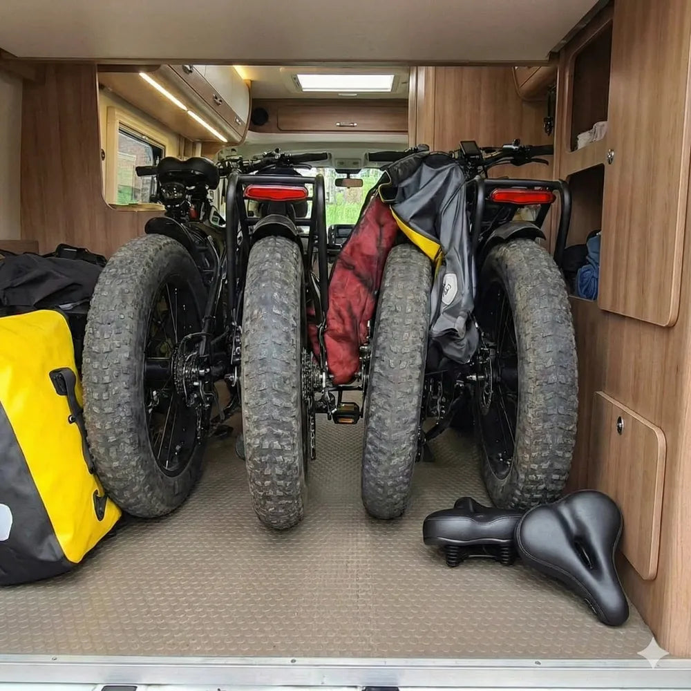 Yes. The folded footprint fits inside most hatchbacks, estates, motorhomes, and caravan lockers. This is one of the Impala’s biggest advantages. True fat-tyre capability without storage problems. Always check your specific measurements before travel.